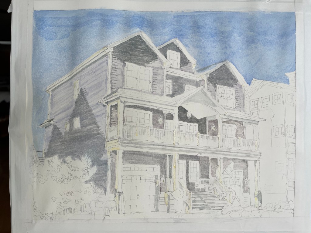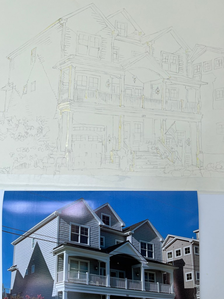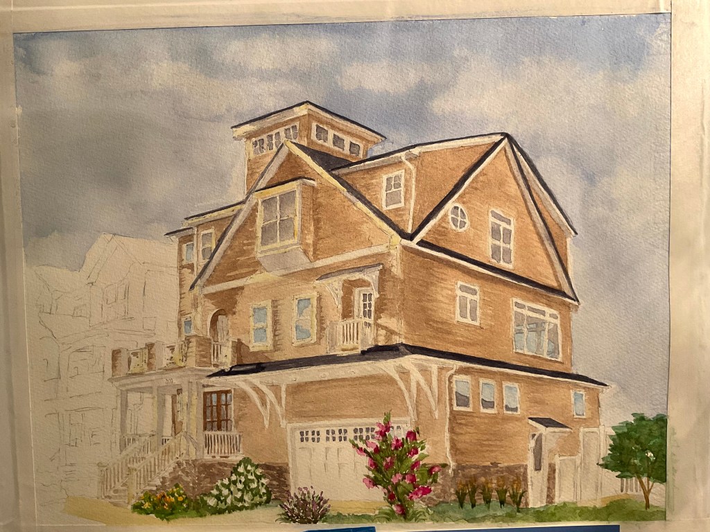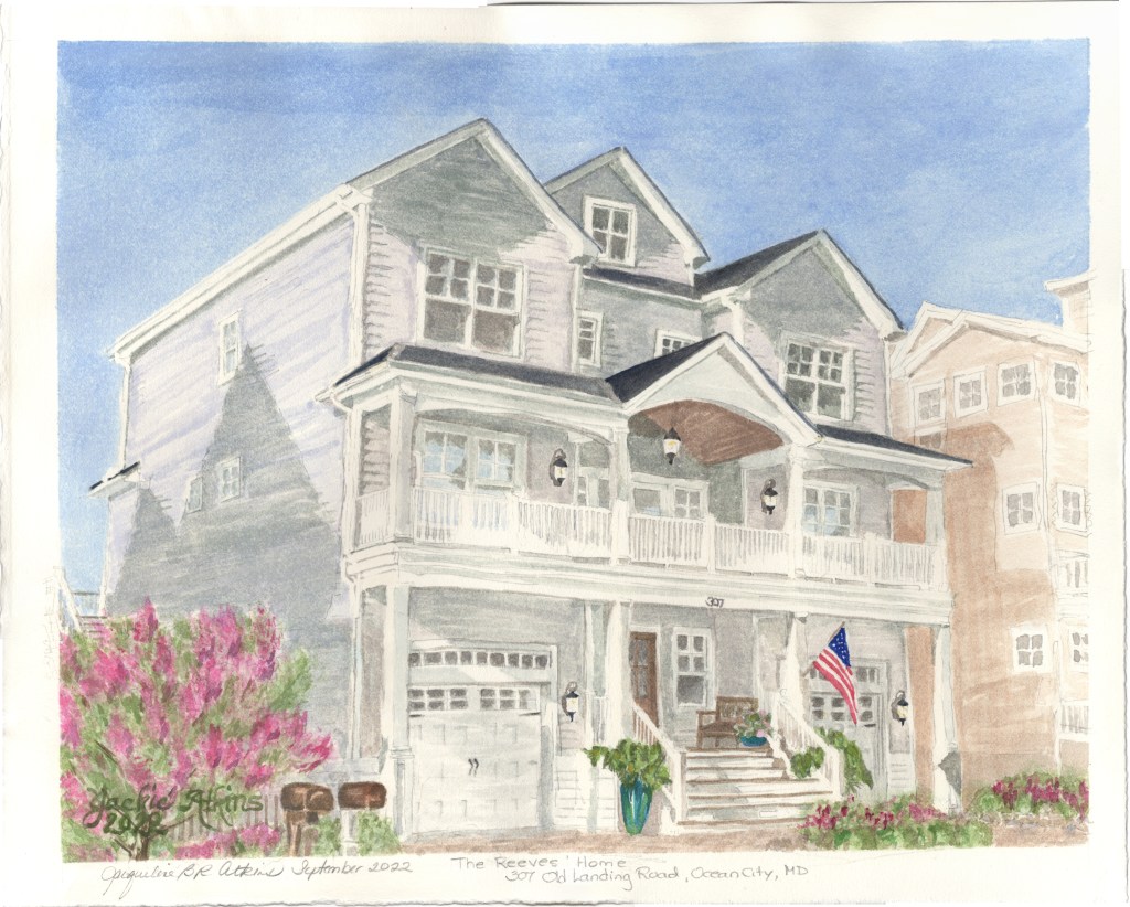 September 7, 2022 – I just completed two Home Portraits for the Art League of Ocean City’s Sand Castle Home Tour. These will both be on the tour which is available both virtually and in person the end of September. It was fun to go and photograph these houses from different angles and in different light. The owners gave some input and I started painting.