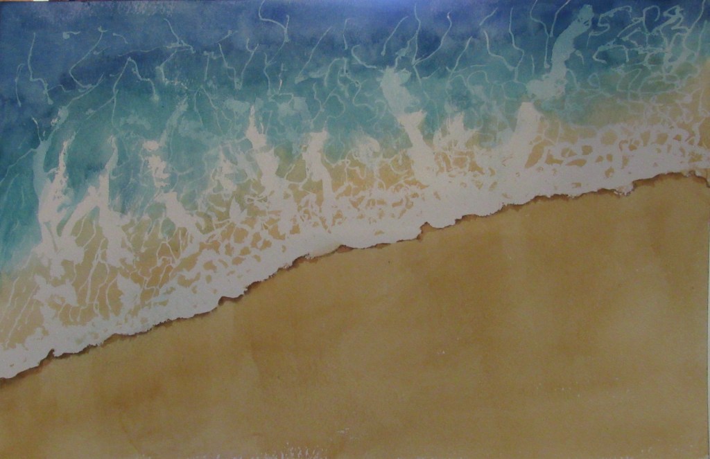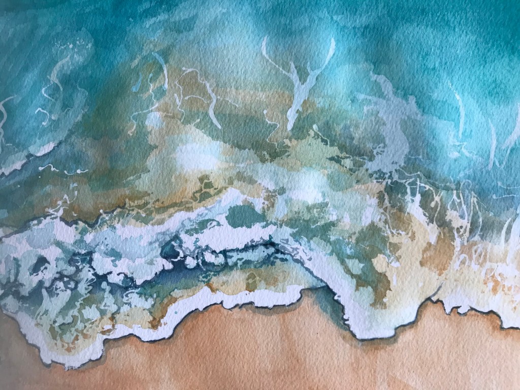 Sundown Beach Walk, watercolor, Framed, 10×8, $240
